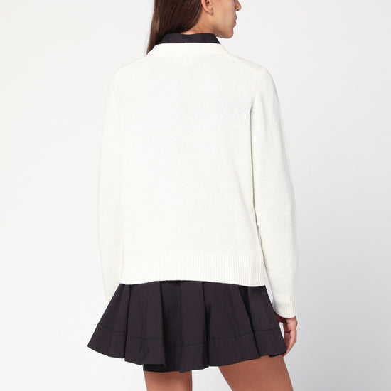 Ganni crew neck sweater in ivory wool blend, featuring long sleeves, front intarsia with puppy and logo lettering, and ribbed edges. Size and Fit - Model wears size S Model measurements: Height: 178 cm Chest: 84 cm Waist: 65 cm Hips: 93 cm