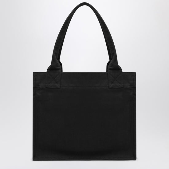 Ganni black canvas tote bag, featuring two handles, an internal zip pocket, and a contrasting logo on the front. Size and Fit - Width 37 cm x Height 31 cm x Depth 15 cm Handle drop: 30 cm