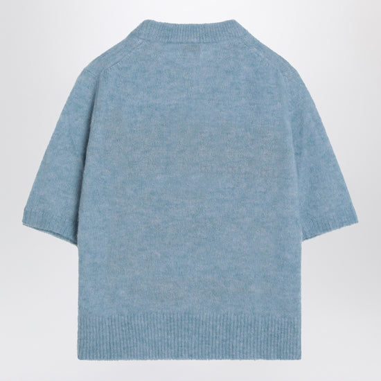 GANNI Light blue sweater with alpaca blend logo
