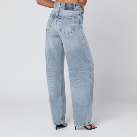 Haikure jeans in light blue cotton denim, featuring a mid-rise waist, belt loops, zip and button closure, and five pockets. Size and Fit - Model wears size 26 Model measurements: Height: 178 cm Chest: 84 cm Waist: 65 cm Hips: 93 cm