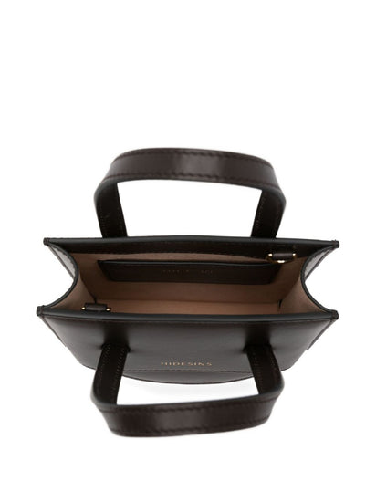 brown leather top handles front pocket logo detail detachable shoulder strap Flap leather mini bag Size and Fit -  .