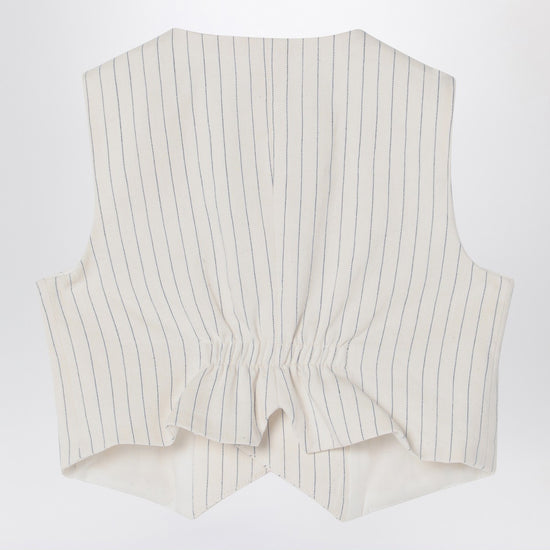Double-breasted gilet by Il Gufo in milk white cotton blend with pinstripe pattern, characterized by front buttoning, V-neck, and elastic detail on the back.