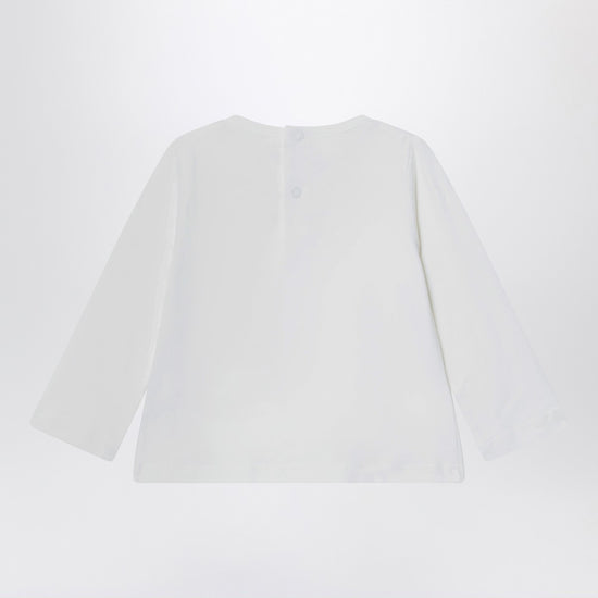 Il Gufo white cotton T-shirt featuring crew neck design, front bunny print and back button closure.