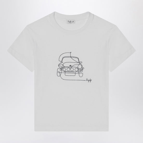 White cotton T-shirt by Il Gufo, featuring short sleeves, ribbed crew neck, and embroidered logo on the chest.