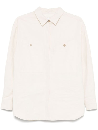 beige concealed front button fastening two chest patch pockets buttoned cuffs classic collar Nolani cotton t-shirt Size and Fit - This piece fits true to size. We recommend you get your regular size. Model is 1,75m / 5ft 8in wearing size 36 (FR)