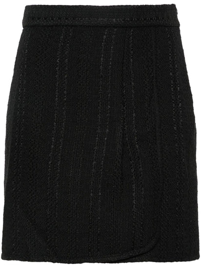black cotton blend knitted construction elasticated waistband front slit straight hem Knitted mini skirt Size and Fit - This piece fits true to size. We recommend you get your regular size. Model is 1,75m / 5ft 8in wearing size 36 (FR)