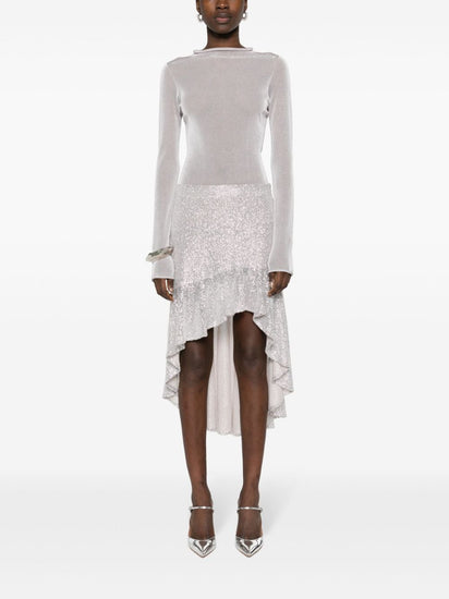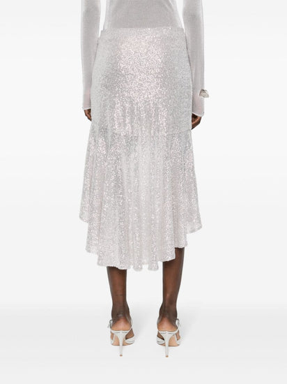 silver-tone mesh design sequin embellishment stretch-design partial lining ruffle asymmetric hem concealed side zip fastening Asymmetric midi skirt Size and Fit - This piece fits true to size. We recommend you get your regular size<br>Model is 1,75m / 5ft 8in wearing size 36 (FR).