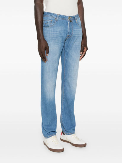 logo patch to the rear Slim fit denim jeans Size and Fit - This piece fits true to size. We recommend you get your regular size. Model is 1,84m / 6ft 1in wearing size 32 (WAIST CM)
