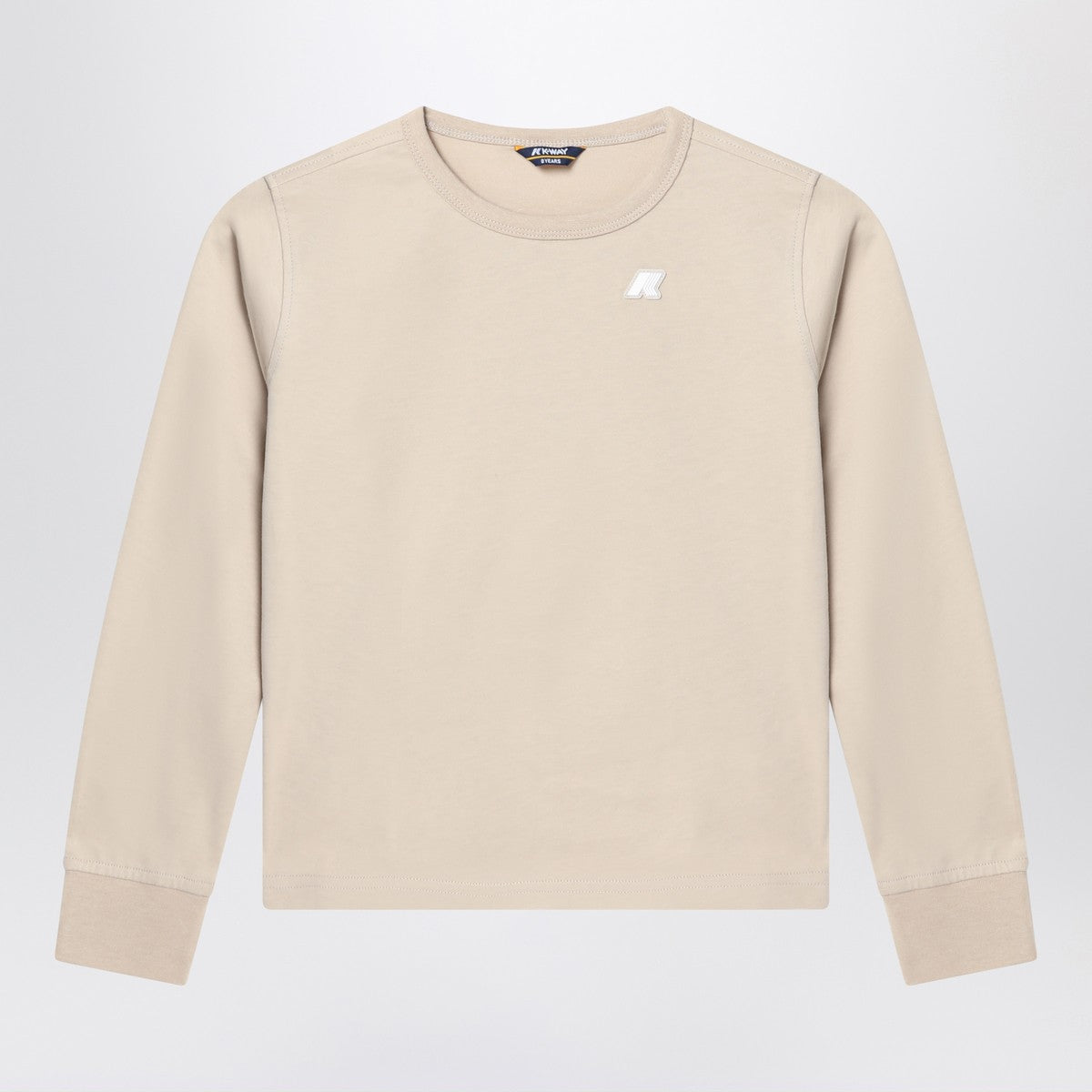 Beige cotton jersey crew-neck T-shirt from K-Way featuring long sleeves with ribbed cuffs, logo patch on chest and straight hem.