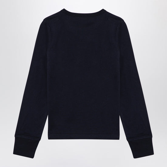 Blue cotton jersey crew-neck T-shirt from K-Way featuring long sleeves with ribbed cuffs, logo patch on chest and straight hem.