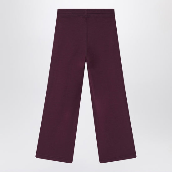 Purple cotton K-Way sporty flared trousers featuring a ribbed elasticated waistband with drawstring, two side welt pockets and logo patch on the front.