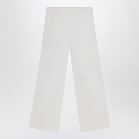 White cotton K-Way sporty flared trousers featuring a ribbed elasticated waistband with drawstring, two side welt pockets and logo patch on the front.