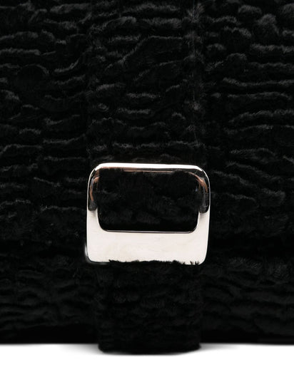 black textured effect buckle fastening short top handle flap closure rectangular shape Simona shoulder bag Size and Fit - DEPTH: 7.0 Centimetres. HEIGHT: 17.0 Centimetres. STRAP: 50.0 Centimetres. WIDTH: 29.0 Centimetres.