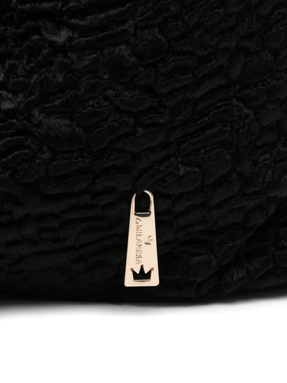 black textured effect triangular shape snap button fastening single top handle gold-tone hardware Lisa medium shoulder bag Size and Fit - DEPTH: 9.0 Centimetres. HEIGHT: 25.0 Centimetres. WIDTH: 45.0 Centimetres. HANDLE: 15.0 Centimetres.