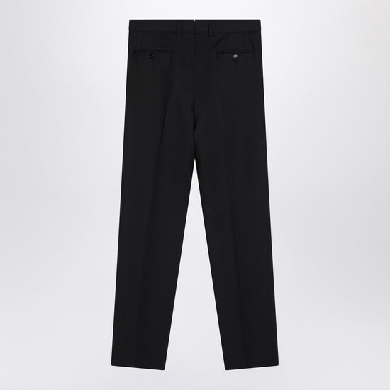 Lardini navy blue virgin wool trousers, characterized by belt loops, two side welt pockets, front closure with zip, button and hook, and two back welt pockets with button. Size and Fit - Model wears size 48 IT Model measurements: Height: 187 cm Chest: 102 cm Waist: 76 cm Hips: 92 cm