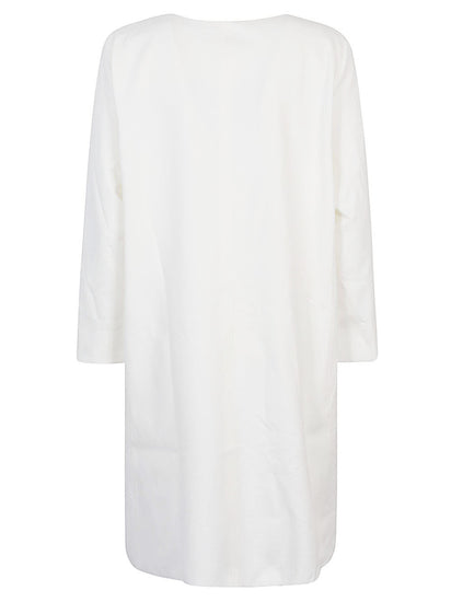 Single-color white dress with long sleeves, regular neckline and two front welt pockets. Short dress Size and Fit - This piece fits true to size. We recommend you get your regular size. Model is 1,75m / 5ft 8in wearing size 40 (IT)