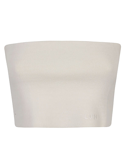 Creamy white bandeau top with tone-on-tone logo Bandeau top Size and Fit - This piece fits true to size. We recommend you get your regular size. Model is 1,75m / 5ft 8in wearing size S