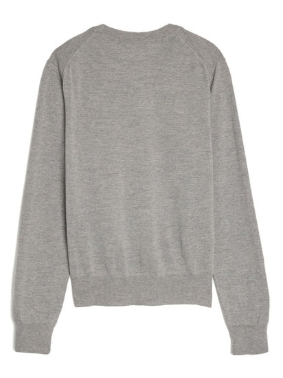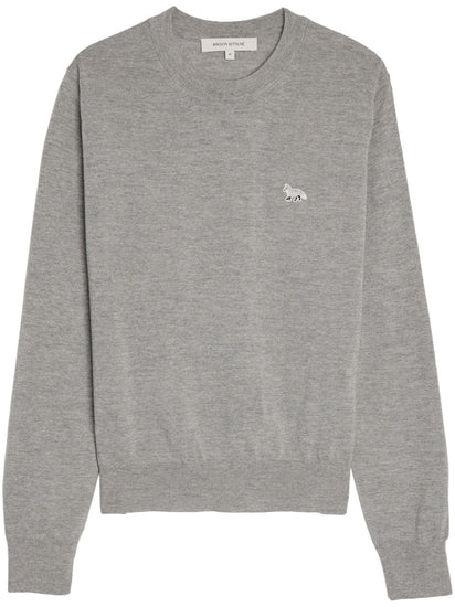 Grey, wool, knit construction, ribbed trim, melange effect, signature fox motif, logo patch on the chest, crew neck, long sleeves, ribbed cuffs and hem, straight hem. Baby Fox wool jumper Size and Fit - This piece fits true to size. We recommend you get your regular size. Model is 1,75m / 5ft 8in wearing size S