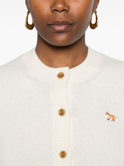 off-white embroidered Profile Fox button fastening ribbed trims long sleeves wool knit Baby Fox wool cardigan