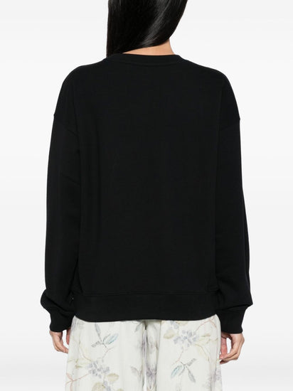 black crew neck long sleeves ribbed cuffs and hem Baby Fox cotton sweatshirt
