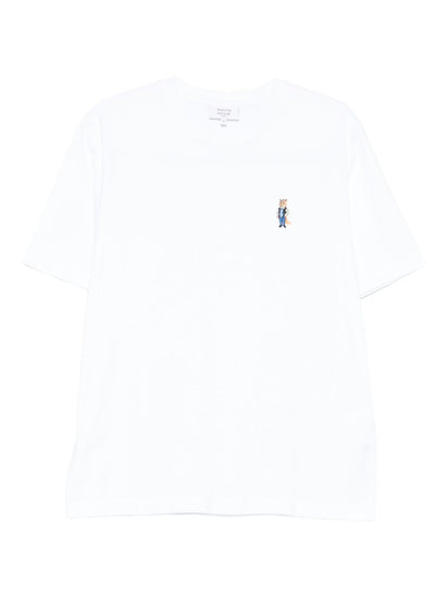 White cotton button down shirt from Maison Kitsuné. Dressed Fox cotton t-shirt