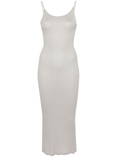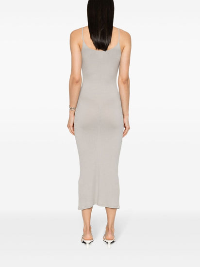 grey stretch-design ribbed knit scoop neck spaghetti straps sleeveless ankle-length straight hem unlined Ribbed viscose long dress Size and Fit - This piece fits true to size. We recommend you get your regular size. Model is 1,75m / 5ft 8in wearing size 1 (NUM)