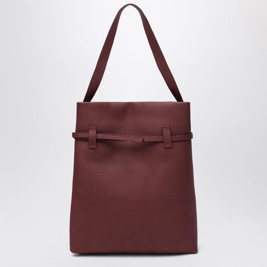 Borsa tote by Manu Atelier in burgundy hammered leather, characterized by a single handle, adjustable strap with buckle, magnetic closure, internal zip pocket with logo, and suede lining. Size and Fit - Width 31 cm x Height 34,5 cm x Depth 13 cm Handle drop: 25 cm