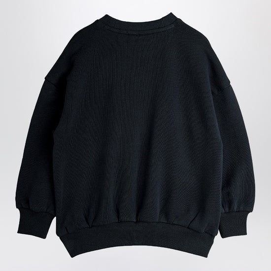 Mini Rodini''s black organic cotton crew neck sweatshirt, characterized by long sleeves, ribbed edges, and a contrasting plush mammoth patch on the front.