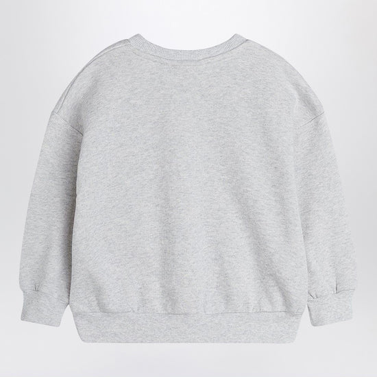 Mini Rodini''s grey organic cotton crew neck sweatshirt, characterized by long sleeves, ribbed edges, and Flundra print on the front.