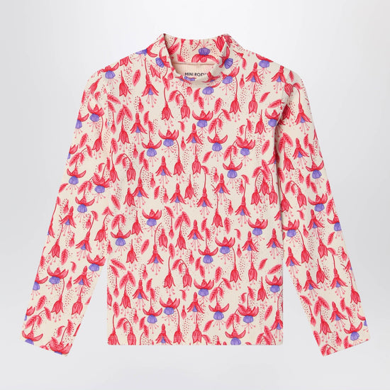 Organic cotton blouse by Mini Rodini in red, featuring a high neck, long sleeves and straight hem.