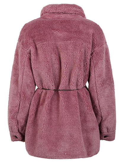 Pink coat, closure with buttons, two fake pockets at the top, waist belt, two low pockets, long sleeves, shirt -style collar. Faux fur coat Size and Fit - This piece fits true to size. We recommend you get your regular size. Model is 1,75m / 5ft 8in wearing size S