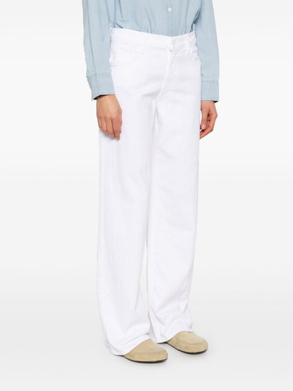 white concealed fly and button fastening belt loops classic five pockets mini logo tag The Spinner zip denim jeans Size and Fit - This piece fits true to size. We recommend you get your regular size. Model is 1,75m / 5ft 8in wearing size 27 (WAIST CM)