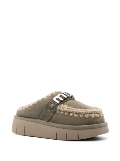 grey suede crochet trim logo buckle slip-on style Bounce Clog slippers