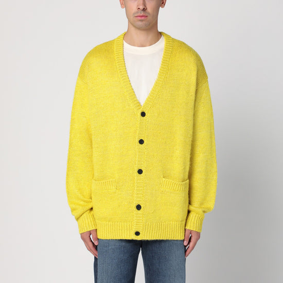 Yellow linen-blend cardigan from New Amsterdam Surf Association featuring a V-neck, long sleeves, a front button placket, two front pockets, ribbed edges, tone-on-tone logo inlay on the back and an oversized fit. Size and Fit - Model wears size L Model measurements: Height: 185 cm Chest: 100 cm Waist: 83 cm Hips: 92 cm