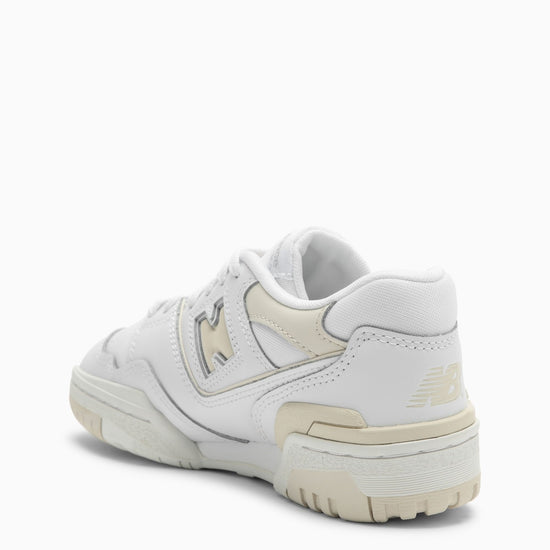 White leather low top trainer from New Balance featuring lace-up fastening, N on side, rounded toe, padded tongue and rubber sole.