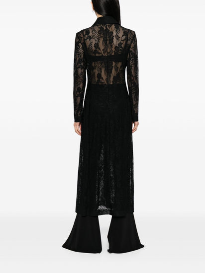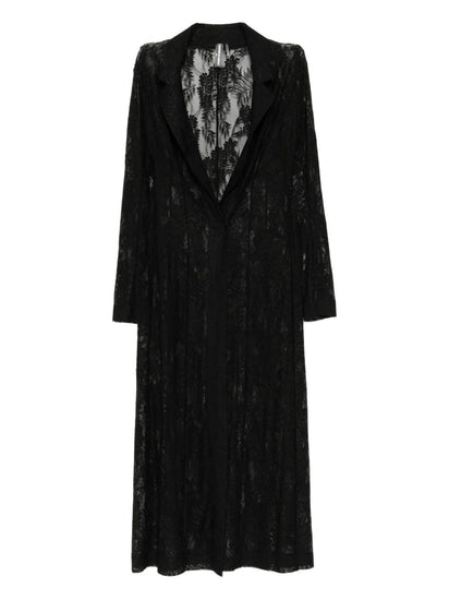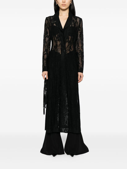 black open front floral-lace detailing Lace long coat Size and Fit - This piece fits true to size. We recommend you get your regular size. Model is 1,75m / 5ft 8in wearing size S