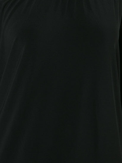 Black off-the-shoulder blouse from Norma Kamali featuring a slim fit, three-quarter length sleeves and a straight hem. Off shoulder jersey top