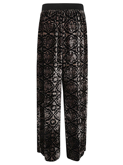 Pantalone nero, gamba larga, vita elasticizzata. Velvet trousers Size and Fit - This piece fits true to size. We recommend you get your regular size. Model is 1,75m / 5ft 8in wearing size S