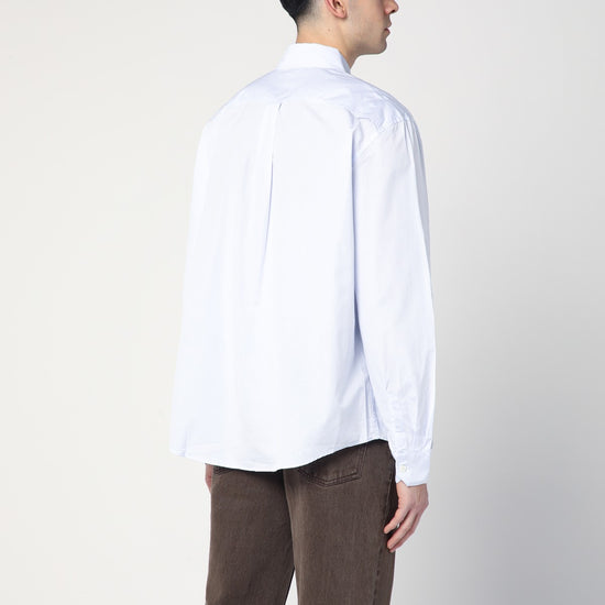 Our Legacy shirt in light blue cotton, featuring a classic collar, front buttoning, long sleeves with buttoned cuffs, a patch pocket on the chest, tone-on-tone logo embroidery on the front, and a curved hem. Size and Fit - Model wears size 50 IT Model measurements: Height: 185 cm Chest: 100 cm Waist: 83 cm Hips: 92 cm