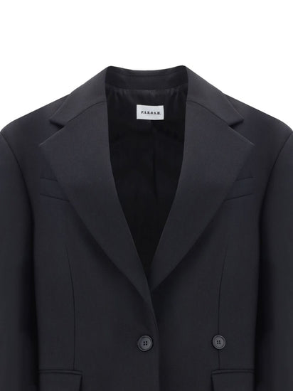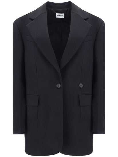black virgin wool blend peak lapels front button fastening long sleeves buttoned cuffs chest welt pocket two front flap pockets straight hem Wool single-breasted blazer jacket Size and Fit - This piece fits true to size. We recommend you get your regular size. Model is 1,75m / 5ft 8in wearing size S