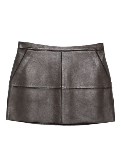 brown leather slash pockets mini lenght Leather mini skirt