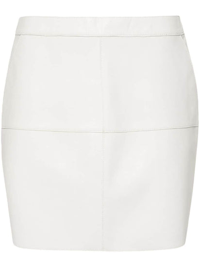 white leather panelled design mid-rise concealed rear hook and zip fastening two diagonal pockets to the sides straight hem thigh-length Leather mini skirt Size and Fit - This piece fits true to size. We recommend you get your regular size. Model is 1,75m / 5ft 8in wearing size S