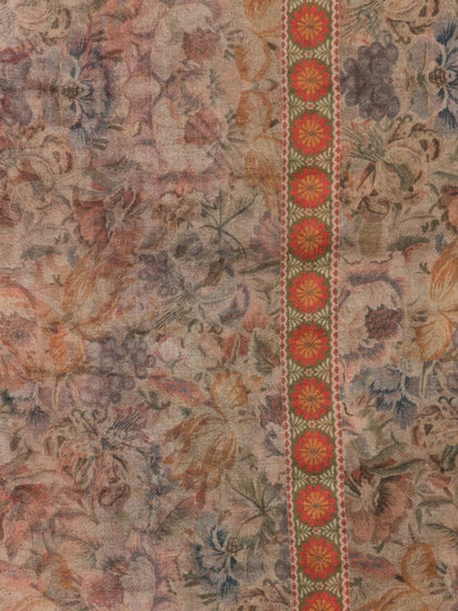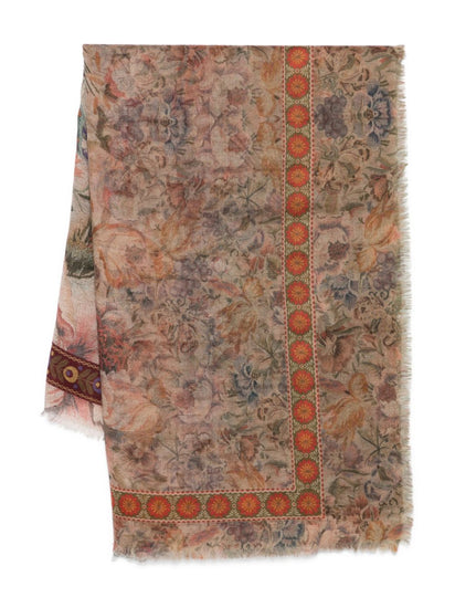 blue/multicolour cashmere fine knit floral print frayed edge wraparound style Printed cashmere scarf Size and Fit - LENGTH: 195.0 Centimetres. WIDTH: 135.0 Centimetres.