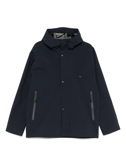 navy blue front press-stud fastening concealed front zip fastening two side zip-fastening pockets embroidered logo at the chest Hooded jacket Size and Fit - Width 10,83 in / 27,5 cm