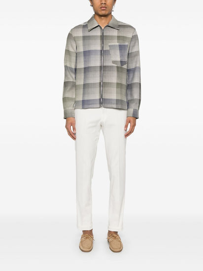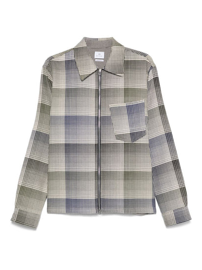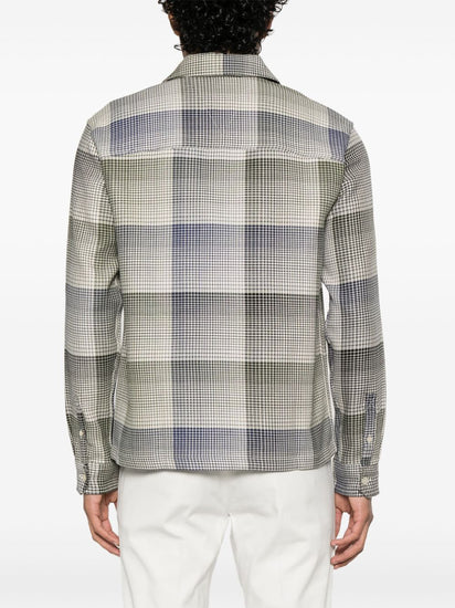 ecru front two-way zip fastening chest patch pocket buttoned cuffs long sleeves Checked cotton shirt jacket Size and Fit - This piece fits true to size. We recommend you get your regular size. Model is 1,84m / 6ft 1in wearing size M