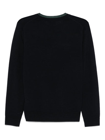 indigo blue crew neck long sleeves Wool crewneck sweater Size and Fit - This piece fits true to size. We recommend you get your regular size. Model is 1,84m / 6ft 1in wearing size M