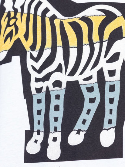 white bold zebra print round neckline short sleeves relaxed fit Zebra print cotton t-shirt