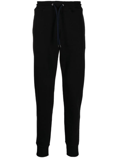 black organic cotton jersey knit ribbed trim silver-tone hardware signature Zebra motif elasticated drawstring waistband slim cut elasticated ankles two side slit pockets rear welt pocket. Zebra logo cotton joggers