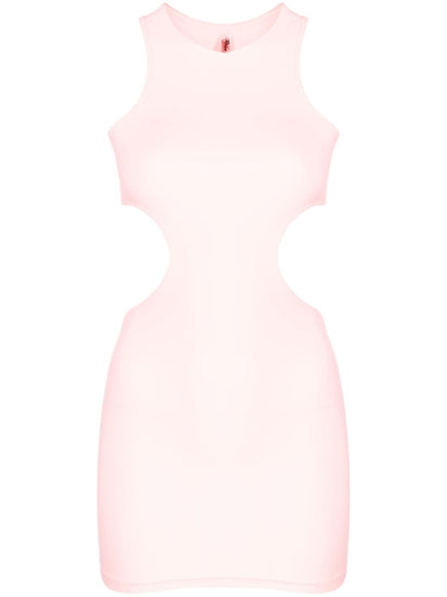 cut-out sleeveless minidress from REINA OLGA featuring blush pink, stretch-design, cut-out detailing, round neck, thin shoulder straps, sleeveless, racerback and thigh-length. Cut-out detail short dress Size and Fit - This piece fits true to size. We recommend you get your regular size. Model is 1,75m / 5ft 8in wearing size 1 (NUM)
