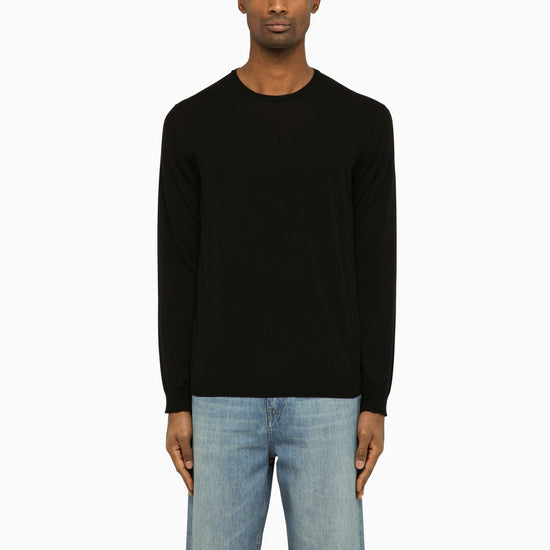 Crew-neck sweater by Roberto Collina in black cotton, featuring a ribbed collar, cuffs and hem and a regular fit. Size and Fit - Model wears size 48 IT Model measurements: Height: 187 cm Chest: 102 cm Waist: 76 cm Hips: 92 cm